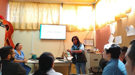 Licenciadas en enfermería responsables del programa de tuberculosis presentan la situación epidemiológica de la TB en el departamento de Atlántida.
